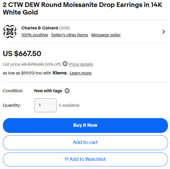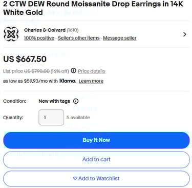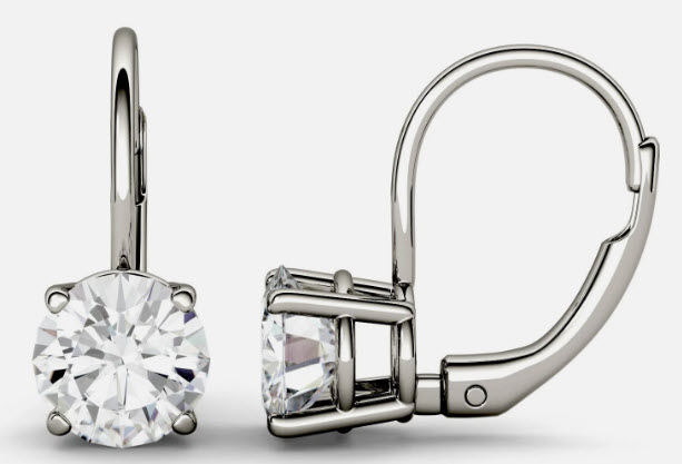 2 CTW DEW Round Moissanite Drop Earrings in 14K White Gold