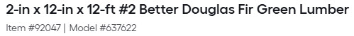 2-in x 12-in x 12-ft #2 BTR Douglas Fir Green Lumber