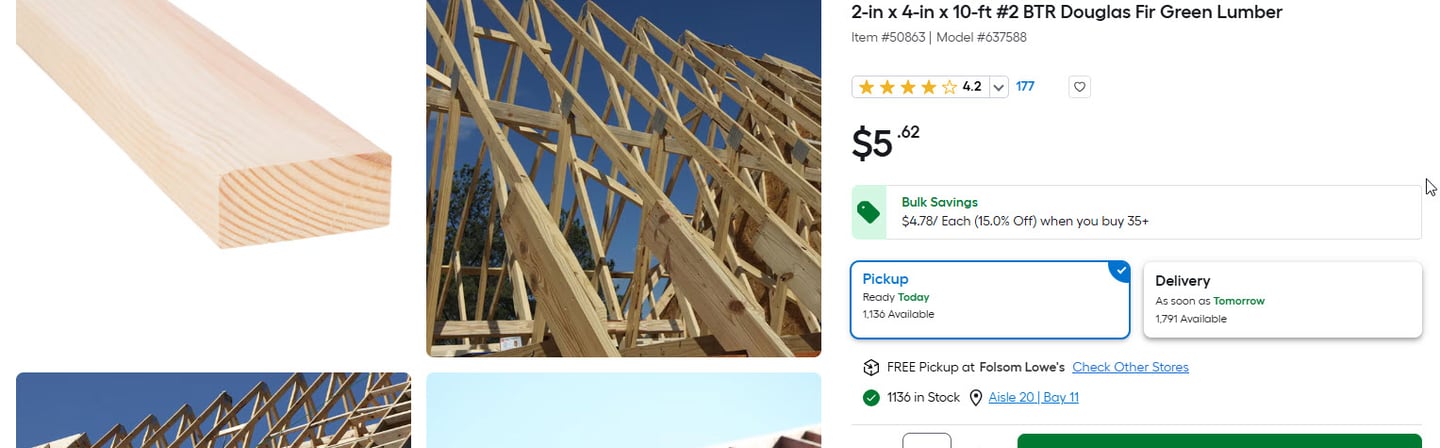 2-in x 4-in x 10-ft #2 BTR Douglas Fir Green Lumber