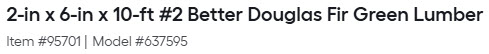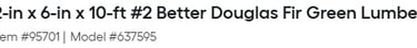 2-in x 6-in x 10-ft #2 BTR Douglas Fir Green Lumber