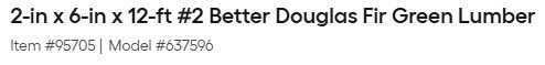 2-in x 6-in x 12-ft #2 BTR Douglas Fir Green Lumber