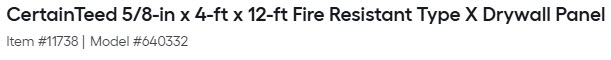 • Why Choose: CertainTeed 5/8-in x 4-ft x 12-ft Fire Resistant type X Drywall Panel