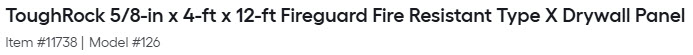 Brand/Type: ToughRock Fireguard® Type X Drywall