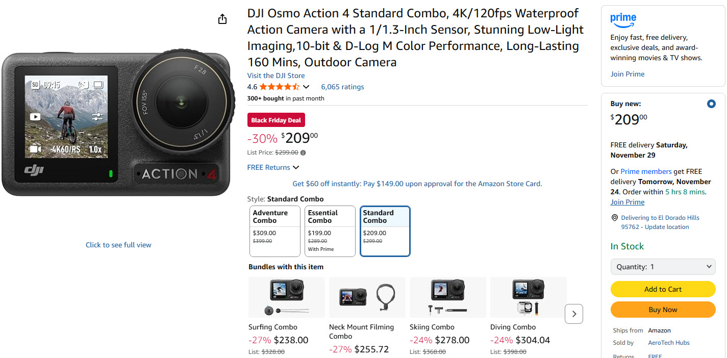 Includes DJI Osmo Action 4, 1 battery, 1 Quick-Release Adapter Mount, and more. This combo is a great introductory choice for first-time action camera users looking to get 4K footage.