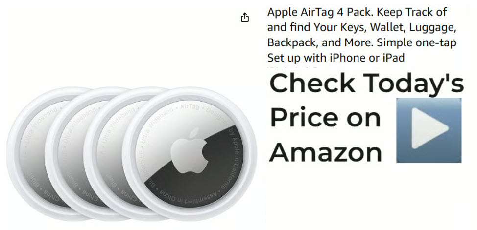 Apple AirTag 4 Pack. Keep Track of and find Your Keys, Wallet, Luggage, Backpack, and More. Simple one-tap Set up with iPhone or iPad