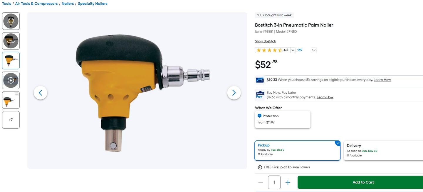 The Bostitch Mini Impact Nailer is a compact yet powerful tool designed for driving nails quickly and with minimal effort. Unlike a traditional hammer, it uses air pressure to deliver controlled impact blows, making it ideal for tight spaces where a full swing isn’t possible. Lightweight and easy to maneuver, this nailer reduces hand fatigue and speeds up framing, decking, and other construction tasks that require repetitive nailing.