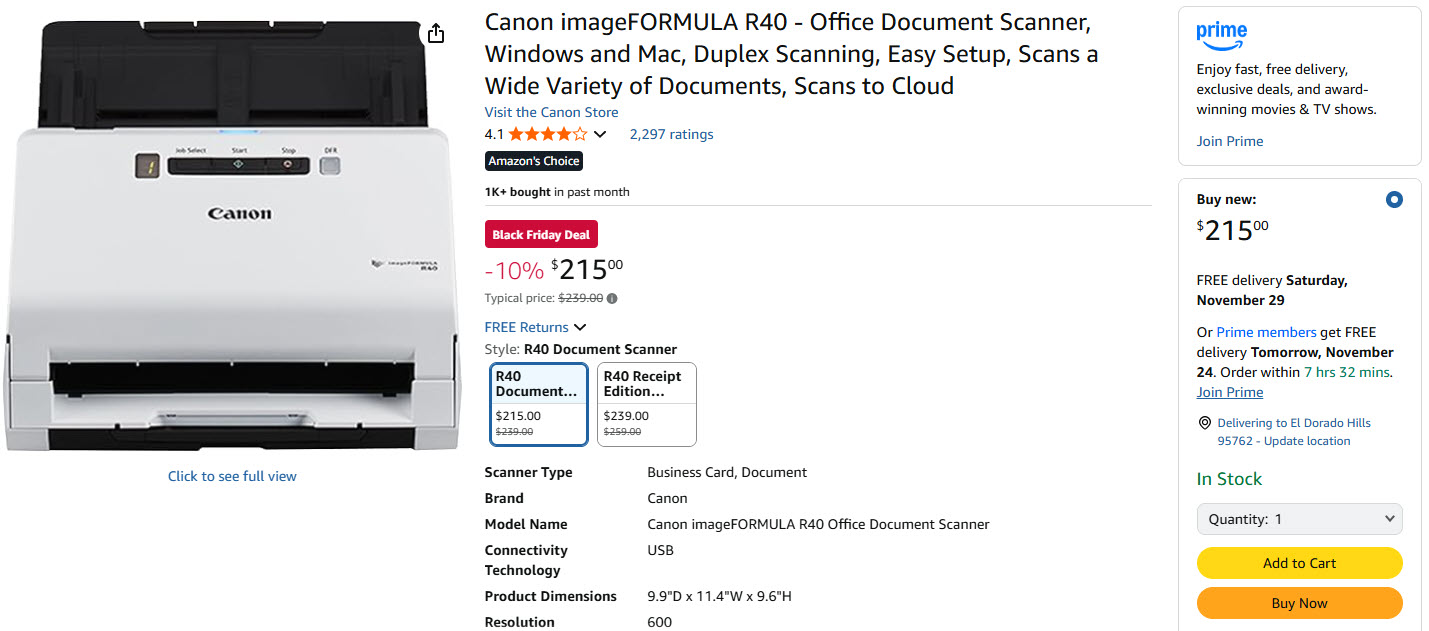Office Document Scanner, Windows and Mac, Duplex Scanning, Easy Setup, Scans a Wide Variety of Documents, Scans to Cloud