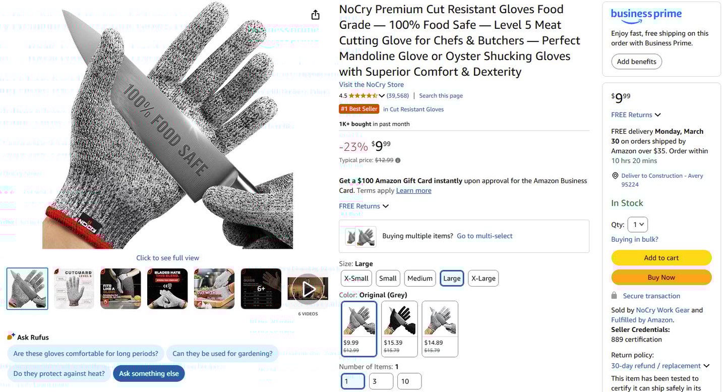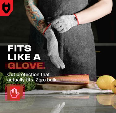 AMBIDEXTROUS — These cut resistant work gloves can be worn on either hand, making these chef gloves for food prep or knife gloves a top choice for anyone in need of premium cut protection. And the breathable cutting gloves for chefs and butchers keep your hands dry, comfortable, and flexible all day long, as opposed to metal or chainmail gloves for cutting food.