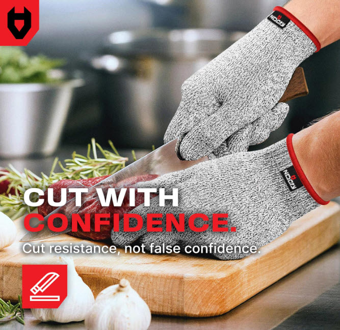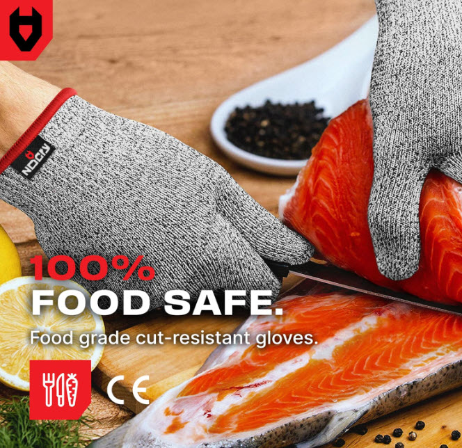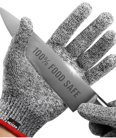 100% FOOD SAFE — Cut gloves food grade with superior grip and a snug fit keep sharp blades securely in your hand so you can prepare food with excellent dexterity and precision. These cut proof gloves for men and women or butcher gloves are perfect for oyster or lobster shucking, dicing vegetables, or using the mandolin.