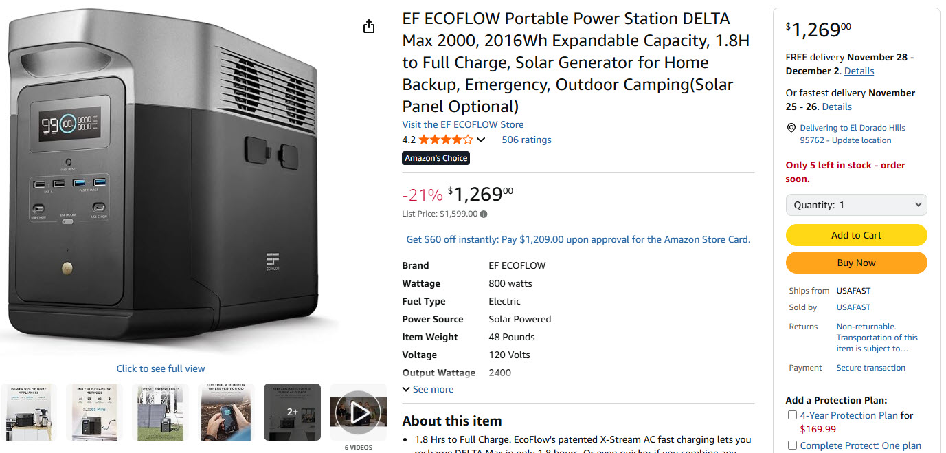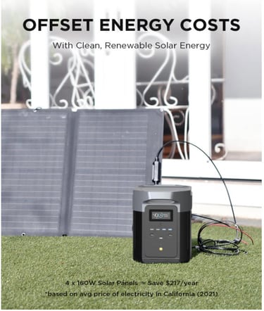 Solar Charge in as fast as 2.5 Hrs. Connect solar panels of up to 800W to keep DELTA Max running even when there's an outage. Compared to gas generator, the cost of gas, noisy operation, maintenance make DELTA Max a good long-term investment.