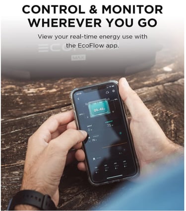Monitor and Control from the EcoFlow App. Take control of your DELTA Max and quick-view stats right from your phone. Customize settings such as charging speeds and Dual Fuel Generator auto-start levels to fit your power needs.