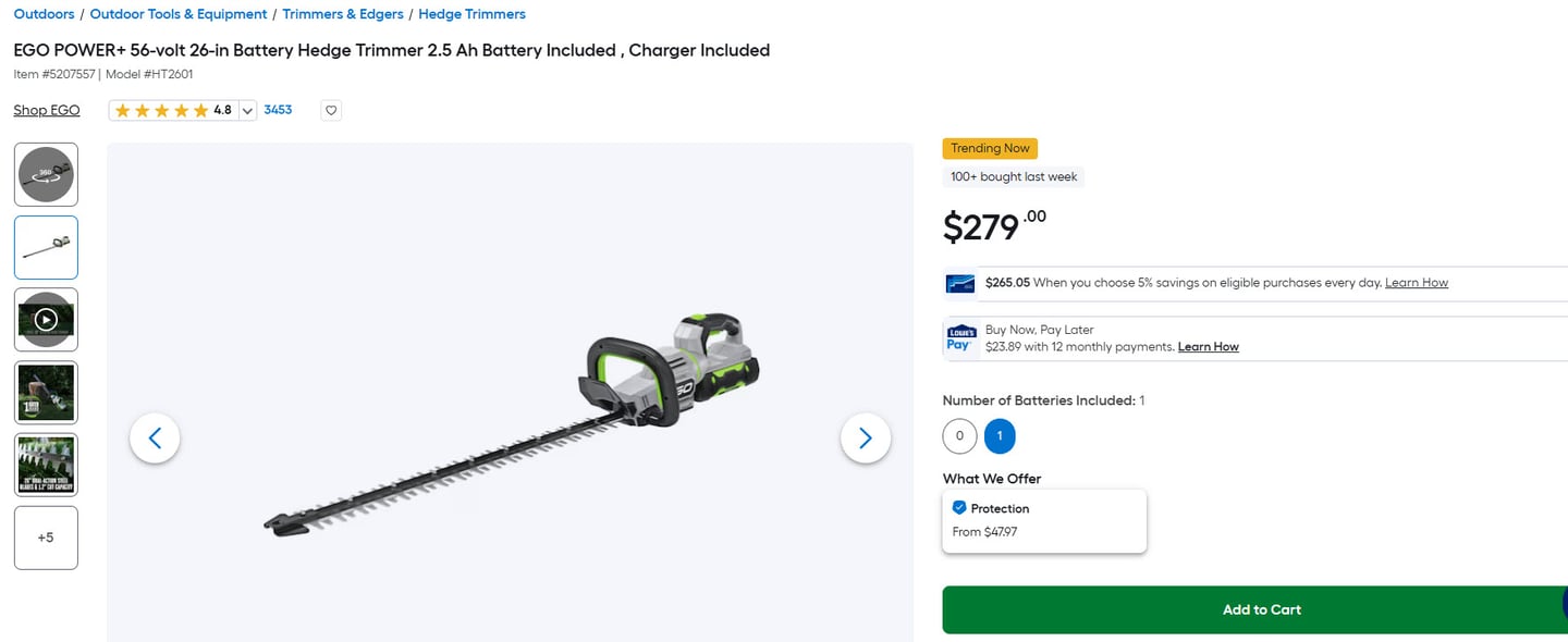 EGO POWER+ 56-volt 26-in Battery Hedge Trimmer 2.5 Ah Battery Included , Charger Included