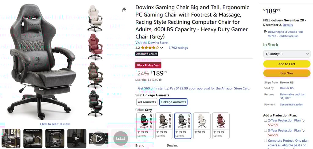 Dowinx Gaming Chair Big and Tall, Ergonomic Computer Chair with Footrest and Massage Lumbar Support, High Back Comfortable Gamer Chair
