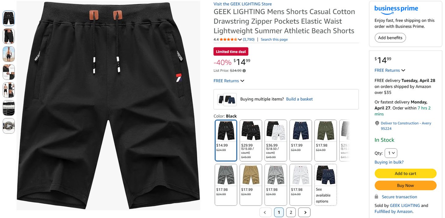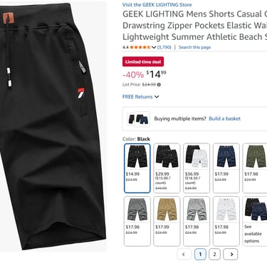 GEEK LIGHTING Mens Shorts Casual Cotton Drawstring Zipper Pockets Elastic Waist Lightweight Summer Athletic Beach Shorts