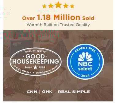 Customizable Warmth: Featuring fast and consistent heating, this heated throw blanket offers 6 heating levels and 4 time‑settings for customizable coziness. Powered by advanced heating‑wire technology, it can precisely control temperature, ensuring safer warmth. Undergoes multiple rounds of rigorous testing and proudly carries the Good Housekeeping Seal for proven quality and innovation