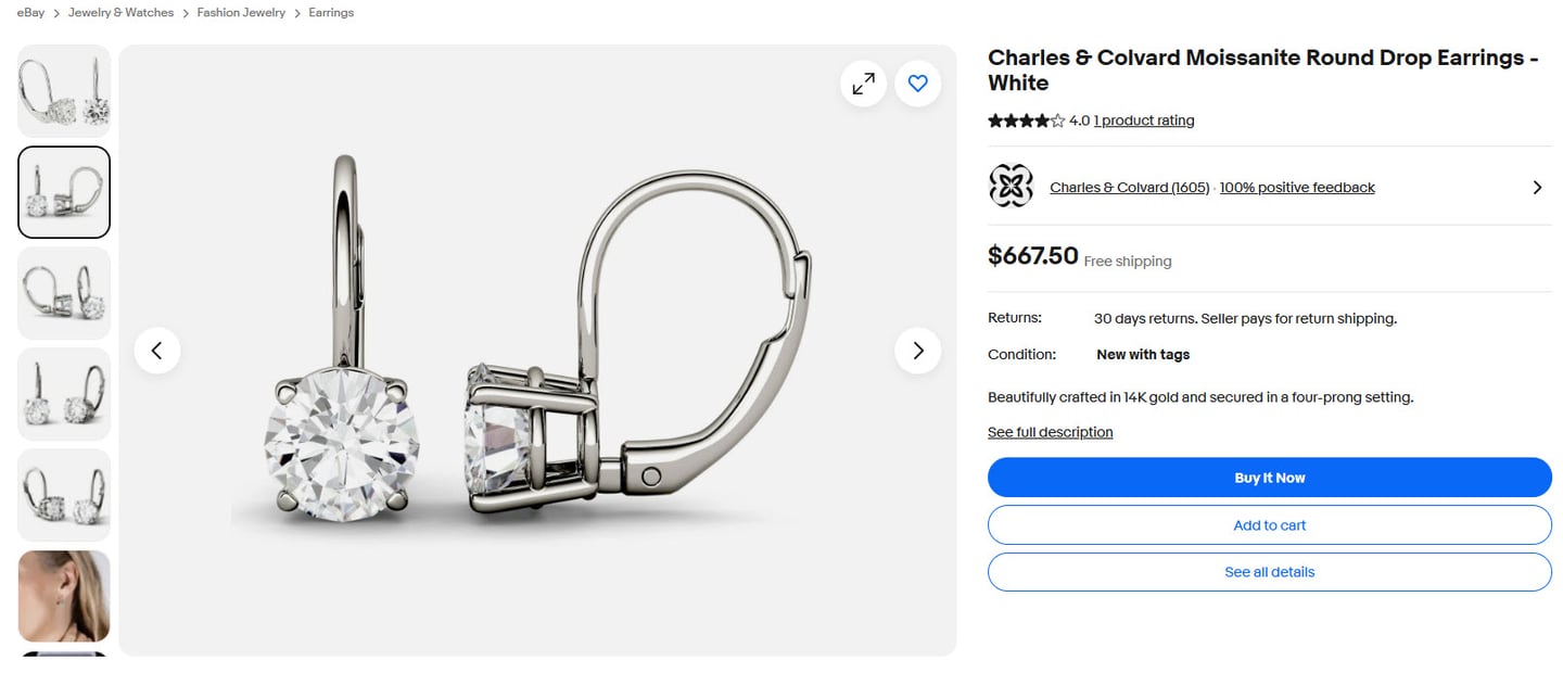2 CTW DEW Round Moissanite Drop Earrings in 14K White Gold