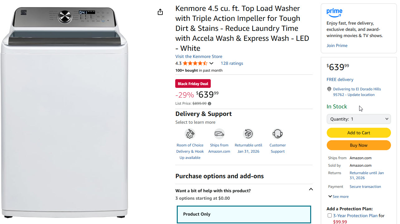 Product Dimensions30"D x 27"W x 44"HBrandKenmoreCapacity4.4 Cubic FeetSpecial FeatureTriple Action AgitatorAccess LocationTop LoadColorWhiteCycle OptionsNormal/Casual, Bulky, Heavy Duty,, Towels, Whites, Delicates, Express,, Cold Clean, Rinse & Spin, and Clean WasherNormal/Casual, Bulky, Heavy Duty,, Towels, Whites, Delicates, Express,, Cold Clean, Rinse & Spin, and Clean WasherItem Weight125.7 PoundsControls TypeKnob & TouchRecommended Uses For ProductResidential