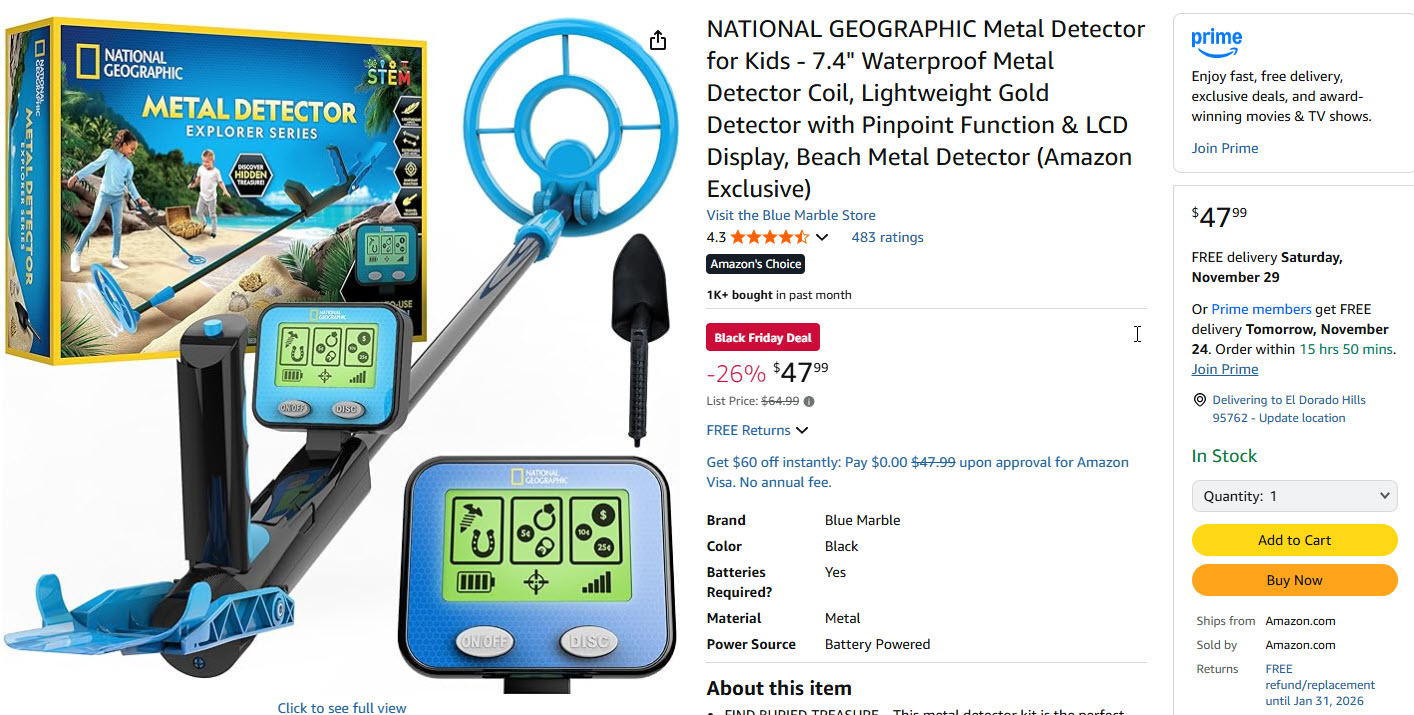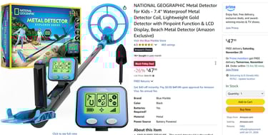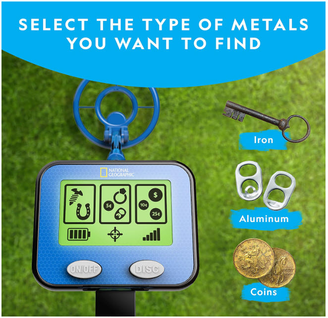 Turn your child into a treasure hunter with this high-quality, kid-friendly metal detector. National Geographic delivers an educational, exciting way for kids to explore the outdoors and uncover hidden treasures right under their feet.