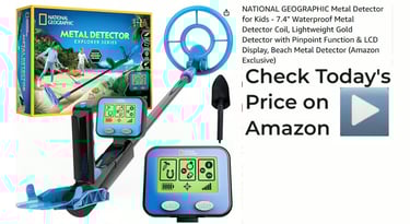 NATIONAL GEOGRAPHIC Metal Detector for Kids - 7.4" Waterproof Metal Detector Coil, Lightweight Gold Detector with Pinpoint Function & LCD Display, Beach Metal Detector (Amazon Exclusive)