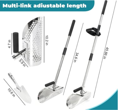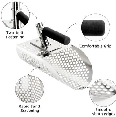 Built for treasure hunting, this stainless steel sand scoop kit includes the shovel, extension rods & hardware. Rust-resistant design makes it perfect for long beach detecting sessions.✔ Two-in-One Digging System
