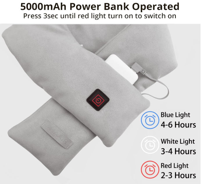 NO MORE CORD CHAOS: This heated scarf breaks free from wall outlets, powered by the included 5000mAh power bank. Its 11.8-inch (30cm) heating zone targets the back of your neck, keeping you warm anywhere—commuting, hiking, or lounging. Not happy? Just let us know.