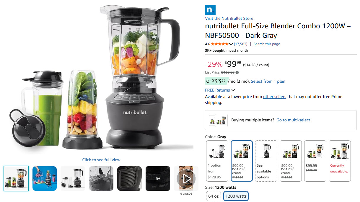 Nutribullet Full-Size Blender Combo 1200W – NBF50500 - Dark Gray