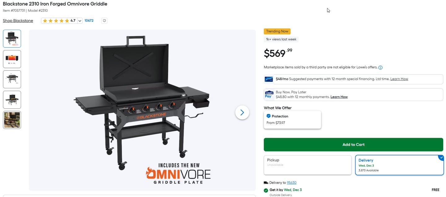 Four locking swivel caster wheels: Ensure the griddle can stay put or move about your patio with ease.