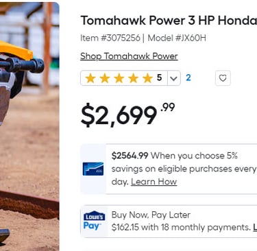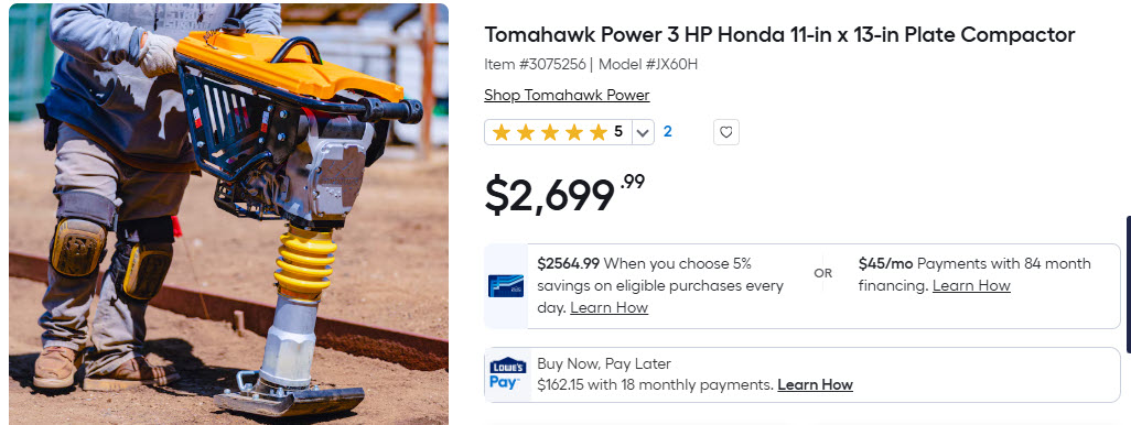🛠️ Tomahawk Power 3 HP Honda 11-in x 13-in Plate Compactor
