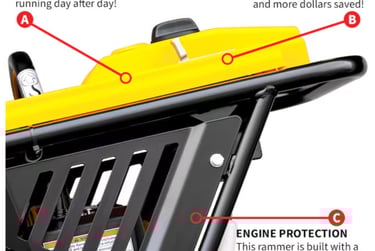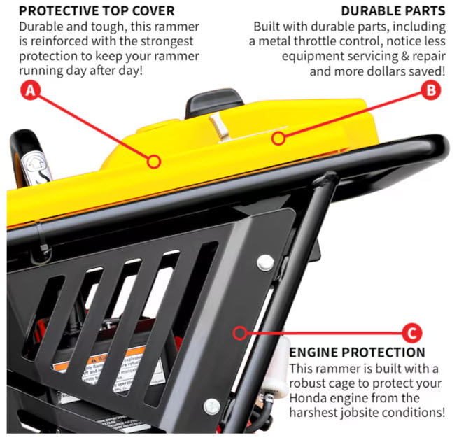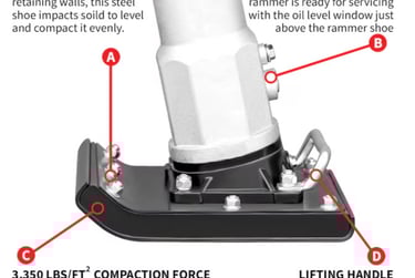 Protective frame guards, shock mounts, and vibration isolation make it more operator-friendly while maintaining rugged performance for foundations, paver bases, and repair work.