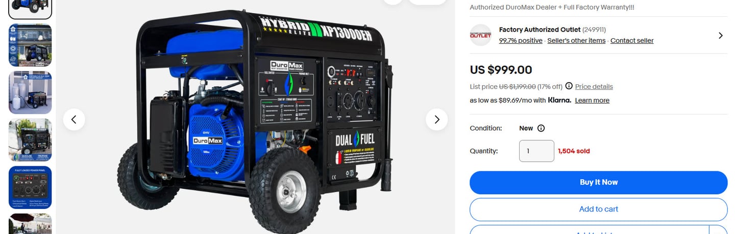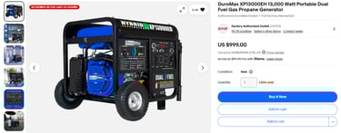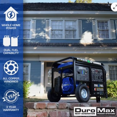The DuroMax XP13000EH 13,000 Watt Portable Dual Fuel Gas Propane Generator is a robust and versatile power solution, ideal for homeowners seeking reliable backup during outages or for powering heavy-duty equipment on job sites. Here's an in-depth look at its features and performance: