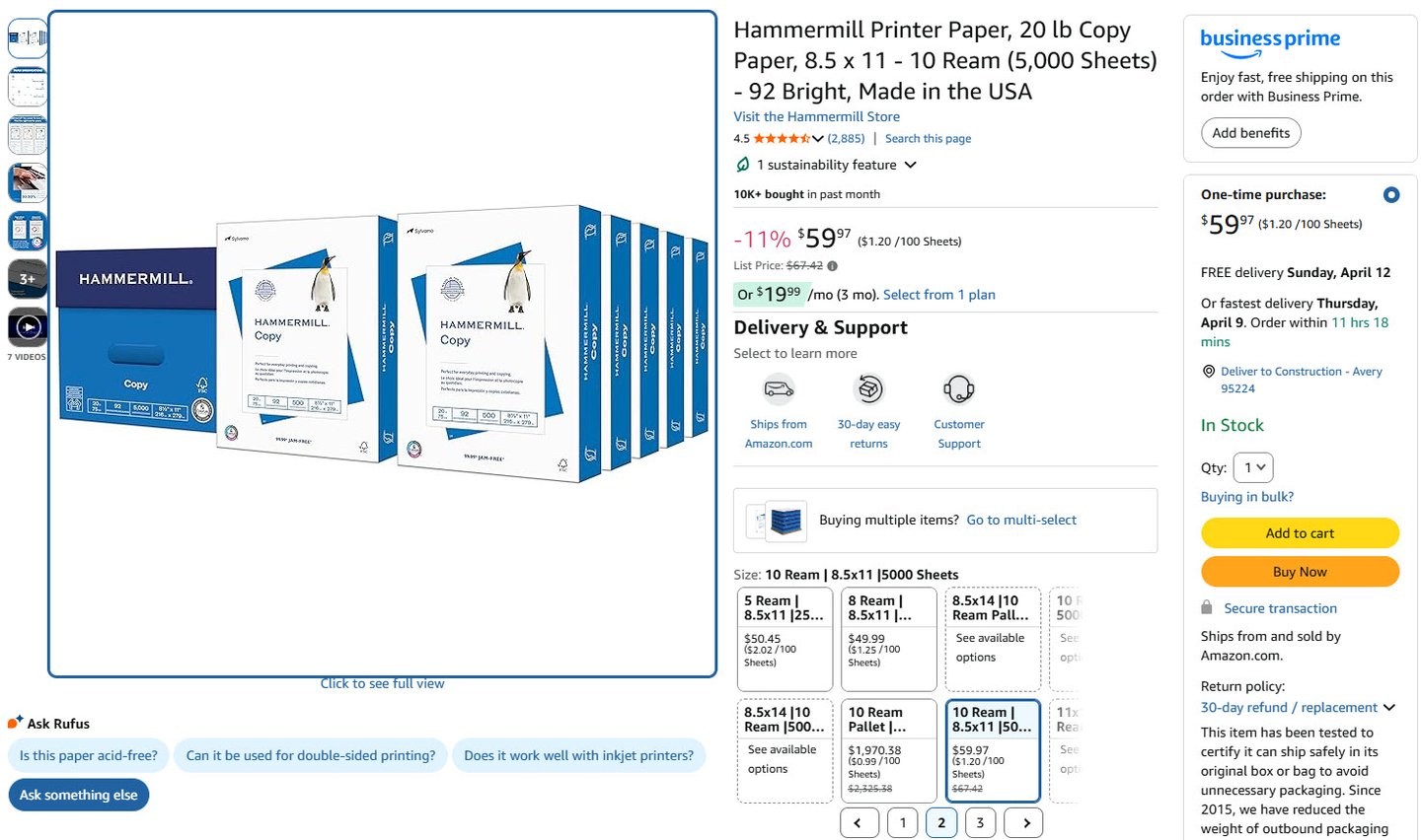 Hammermill Printer Paper, 20 lb Copy Paper, 8.5 x 11 - 10 Ream (5,000 Sheets) - 92 Bright, Made in the USA