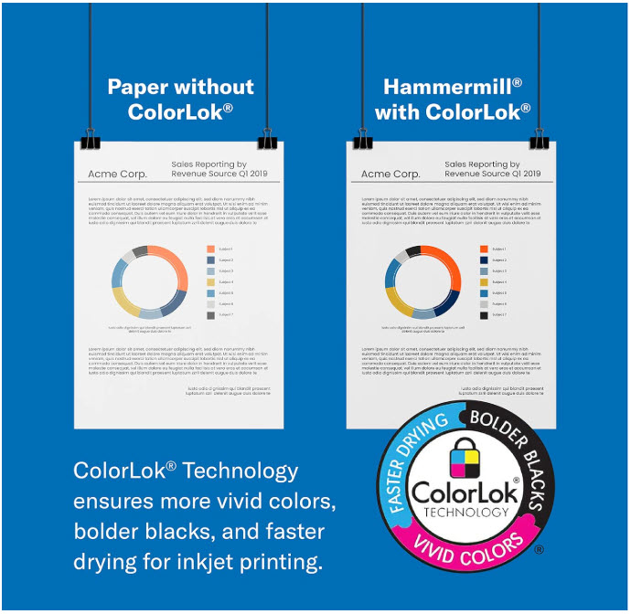 ColorLok - Technology ensures more vivid colors, bolder blacks, and faster drying for inkjet printing.