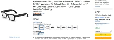 Ray-Ban Meta (Gen 2), Wayfarer, Matte Black | Smart AI Glasses for Men, Women