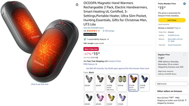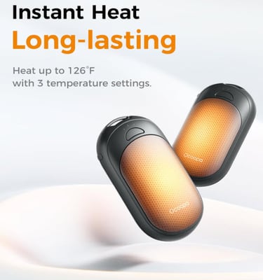 Instant Warmth, Adjustable Heat: Heats up in just five seconds; three temperature settings up to 126 °F meet different comfort needs; ideal for outdoor walks, sports events, or cold commutes