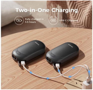 Safe and Reliable Heating: UL certified with safety temperature control chip; USB-C charging with dust-resistant cover ensures dependable daily use