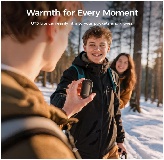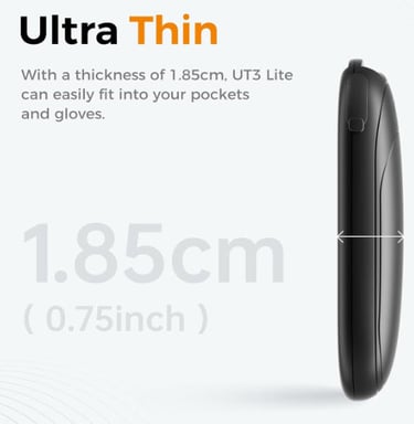 Smart Heating UL Certified, 3-Settings,Portable Heater, Ultra Slim Pocket, Hunting Essentials, Gifts for Christmas Men, UT3 Lite