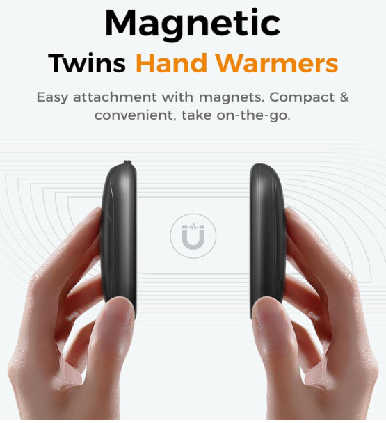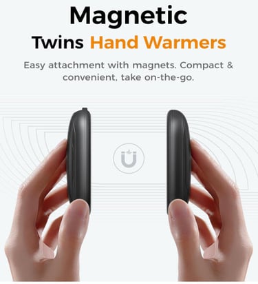 Magnetic 2-in-1 Design: Two hand warmers connect for double-sided heat or separate for each hand; strong magnets keep them together for easy storage and portability