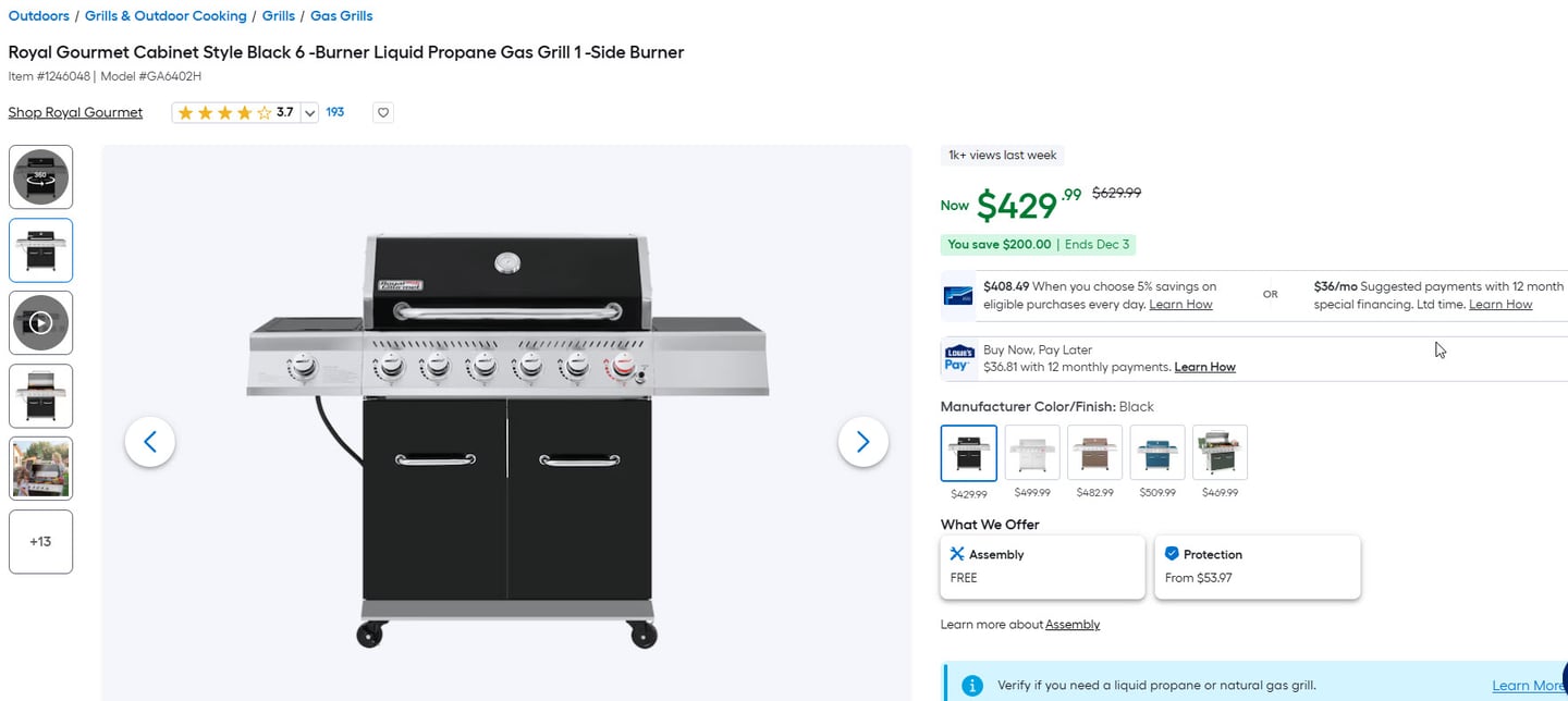 Royal Gourmet Cabinet Style Black 6 -Burner Liquid Propane Gas Grill 1 -Side Burner