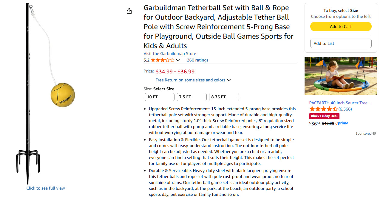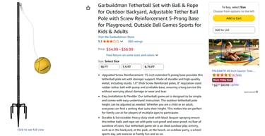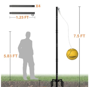 Upgraded Screw Reinforcement: 15-inch extended 5-prong base provides this tetherball pole set with stronger support. Made of durable and high-quality metal, including sturdy 1.0” thick Screw Reinforced poles, 8" regulation sized rubber tether ball with pump and a reliable base, ensuring a long service life without worrying about damage or wear and tear.