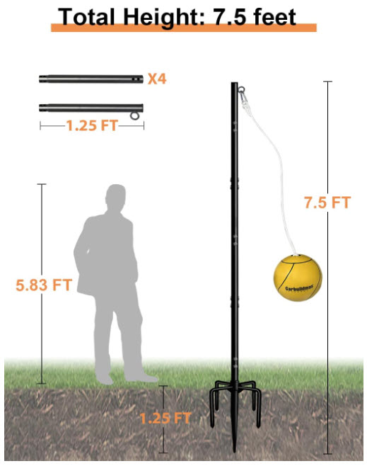 Durable & Serviceable: Heavy-duty steel with black lacquer spraying ensure this tether balls and rope set with pole rust-proof and wear-proof, no fear of sunshine of rains. Our tetherball game set is an ideal outdoor play activity, such as in the backyard, at the park, at the beach, an outdoor party, a school sports day, pet exercise or family fun and so on.
