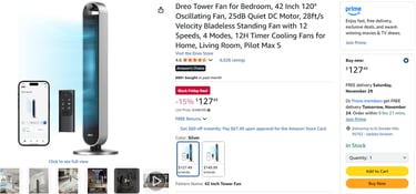 Cooling Gets Smarter: With the Dreo app, you can control your smart tower fan from anywhere. Adjust settings while you're in another room, at the office, or out walking the dog. Plus, Pilot Max is compatible with Amazon Alexa and Google Assistant, so you can use your fan without lifting a finger