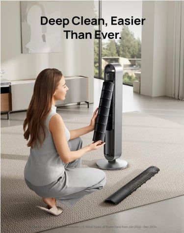 Dedust - Quick and Easy. Unlike a traditional fan, Pilot Max tower fan with remote adopts a removable design in the rear grill, allowing you to clean the fan thoroughly with little hassle. Clean in less than 10 minutes and enjoy fresh air all year round