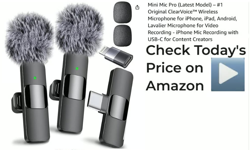 Mini Mic Pro (Latest Model) – #1 Original ClearVoice™ Wireless Microphone for iPhone, iPad, Android, Lavalier Microphone for Video Recording - iPhone Mic Recording with USB-C for Content Creators