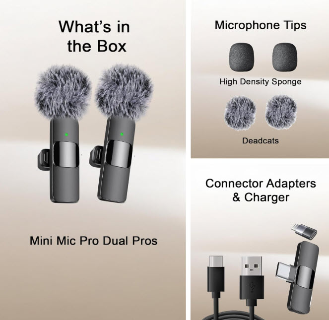 Seamless Connection: Designed to work right out of the box with your iPhone, Android, tablet, or laptop. With both USB-C and Lightning adapters included, Mini Mic Pro connects instantly—no apps, no bluetooth, no friction. Just pure, plug-and-play performance.