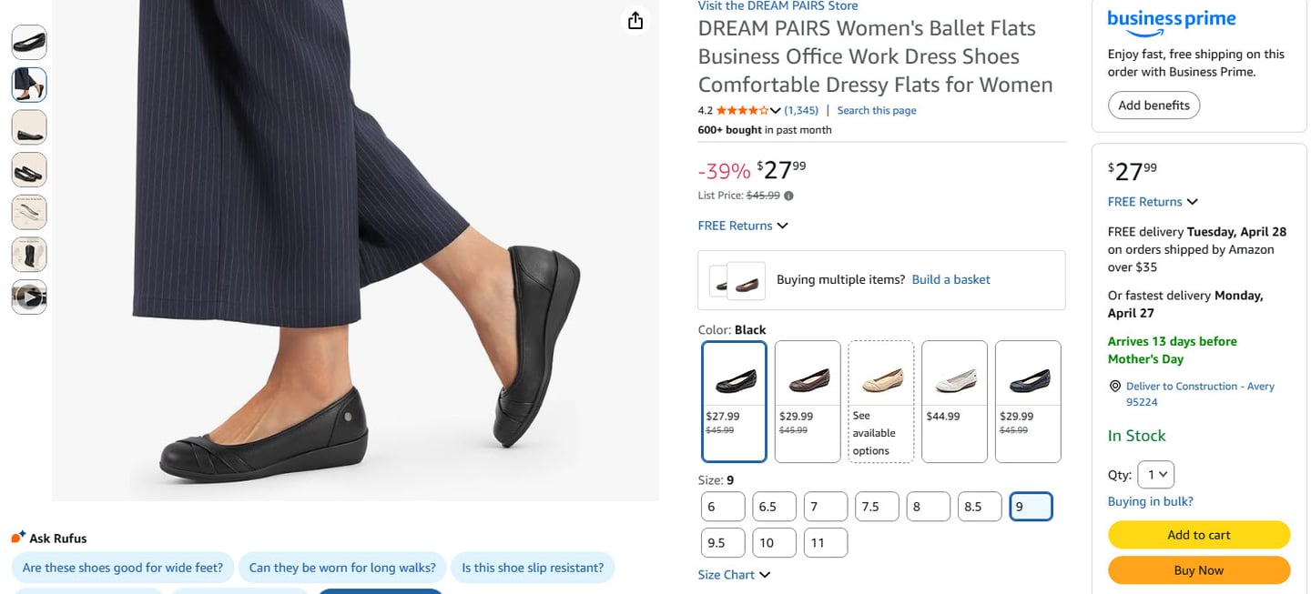 DREAM PAIRS Women's Ballet Flats Business Office Work Dress Shoes Comfortable Dressy Flats for Women