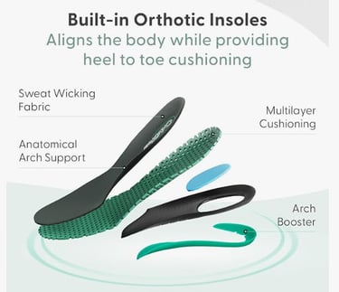 Includes premium orthotic insole and arch booster in every shoe for innovative comfort, arch support, and advanced pain relief.