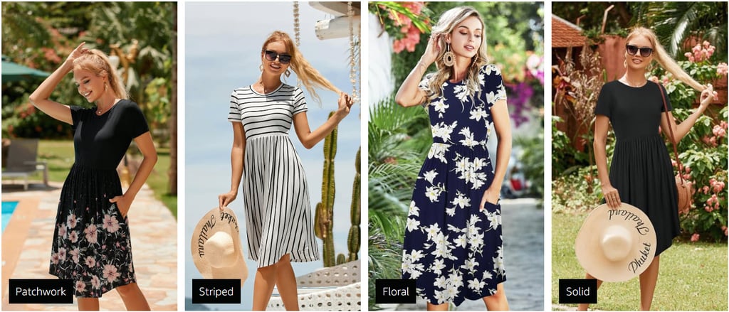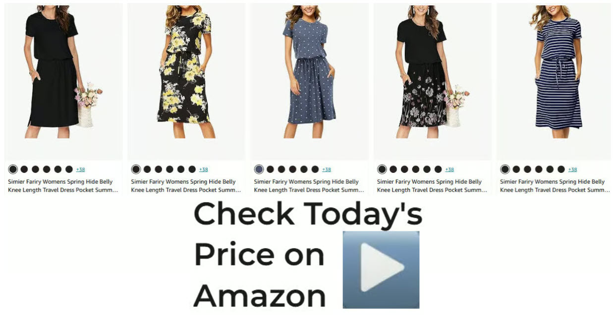 Knee Length Travel Dress Pocket Summer Short Sleeve Midi Work Casual