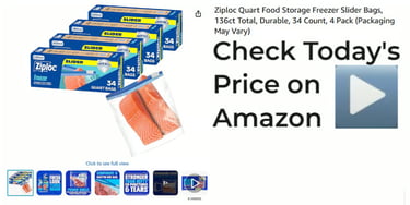 Four 34 count boxes of Ziploc Quart Food Storage Freezer Slider Bags to preserve your favorite flavors and foods in the freezer