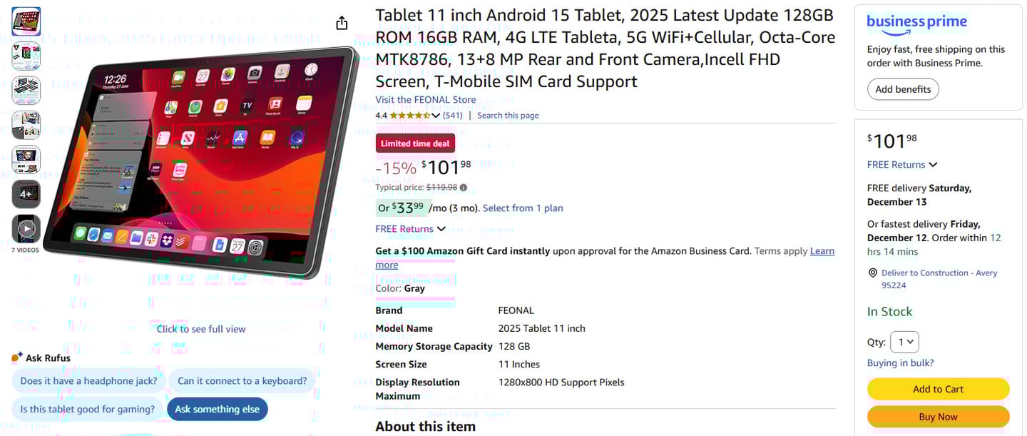 【PERFECT GIFT FOR ANY OCCASION】The FEONAL 11-inch tablet is ultra-slim and lightweight, making it incredibly portable. With SIM card and Wi-Fi connectivity, it’s ideal for home, office, or on-the-go use. Whether it’s for Christmas, New Year, or just because, give the gift of convenience and versatility!