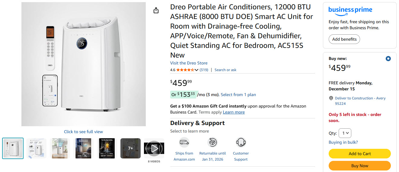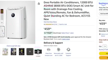 𝗦𝗺𝗮𝗿𝘁 𝗖𝗹𝗶𝗺𝗮𝘁𝗲 𝗖𝗼𝗻𝘁𝗿𝗼𝗹: Control this smart ac unit for bedroom with your voice using Siri, Amazon Alexa and Google Home, or tailor your cooling experience by monitoring temp, humidity and customizing your sleep curve function through the DREO app.